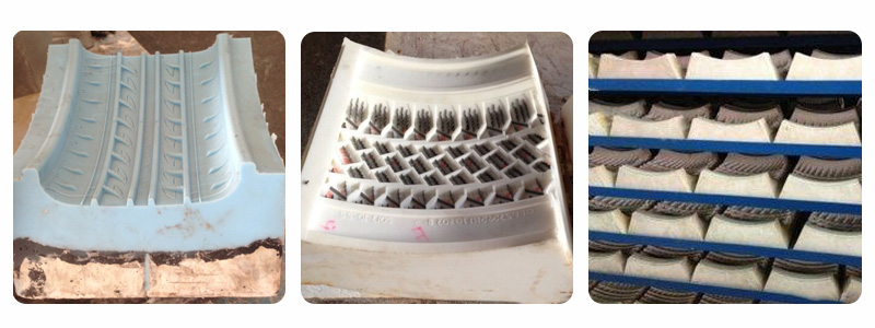 1.将代木轮胎模型用脱模剂涂抹均匀后,用气枪吹干。处理好的轮胎模型四周用钢板围住,钢板也应用脱模剂处理;