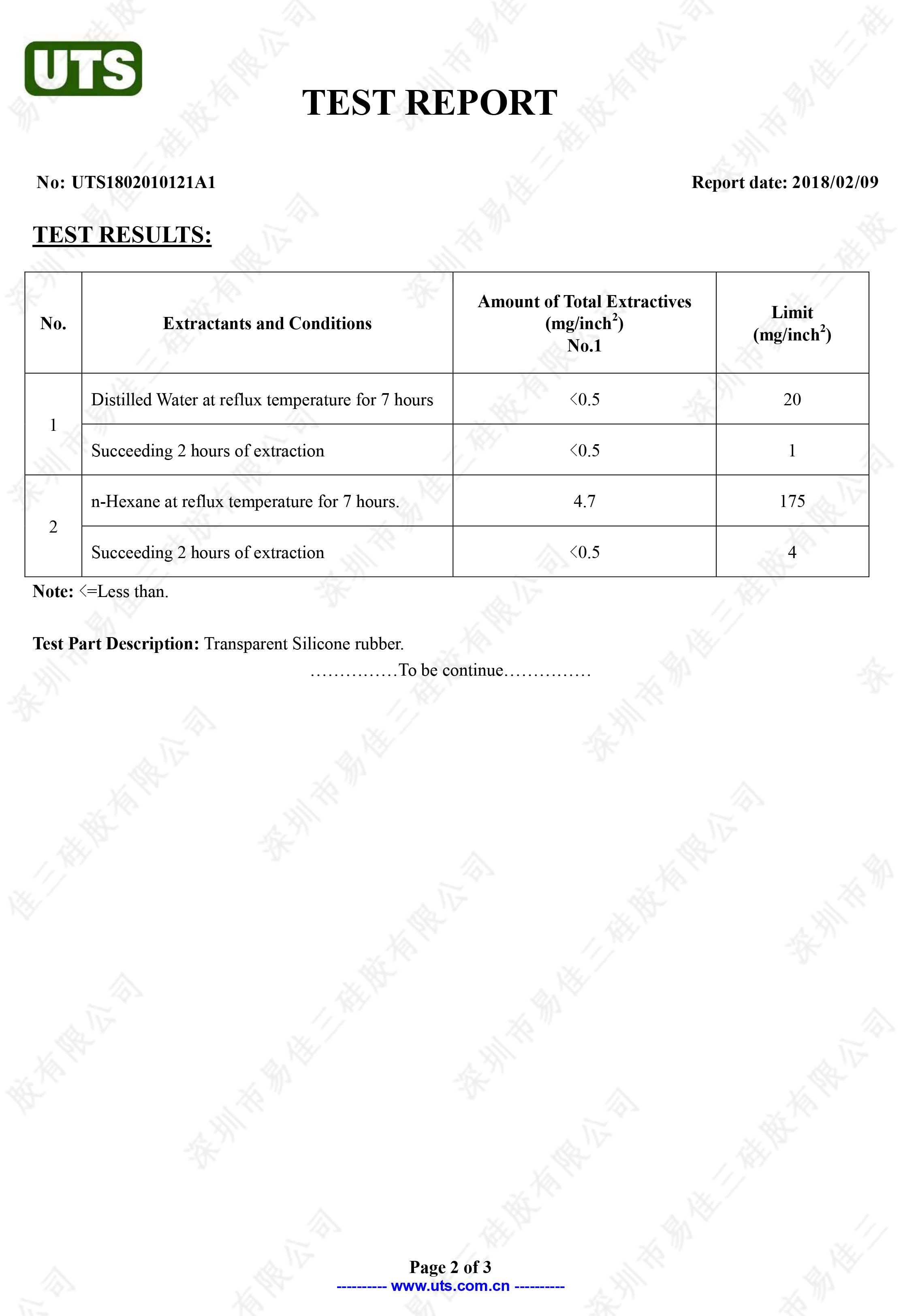 易佳三模具硅胶FDA食品级认证报告(英文版)
