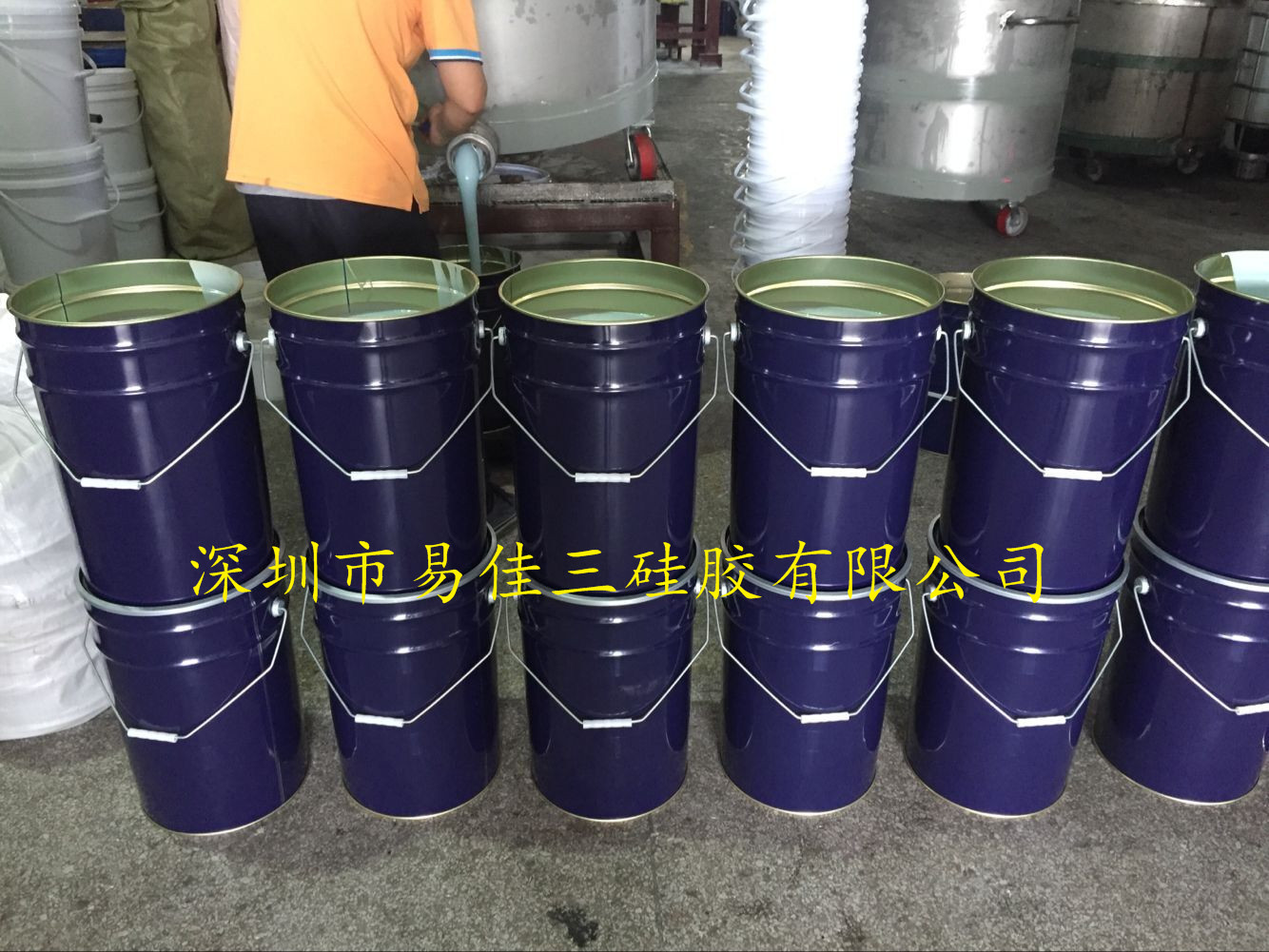 蓝色液体硅胶装桶
