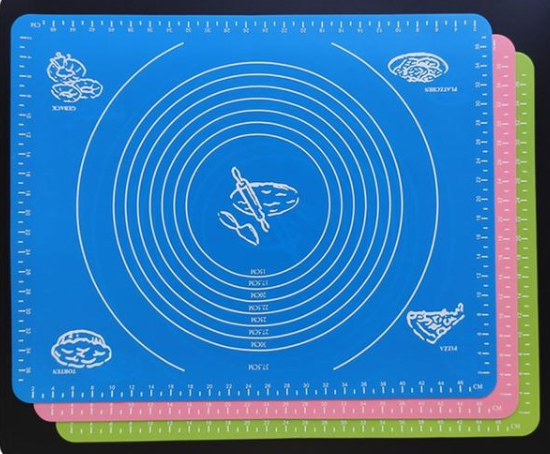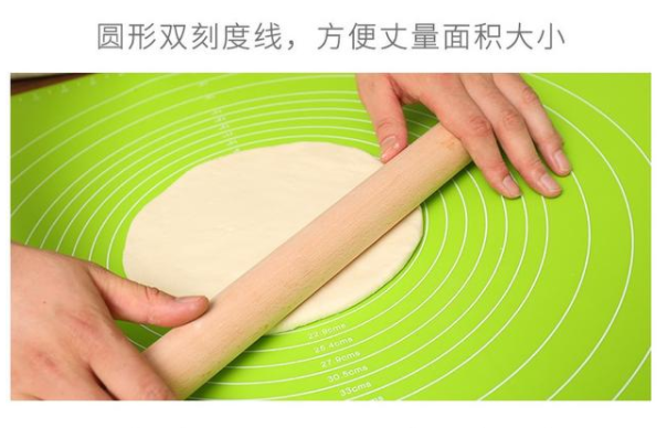 硅胶垫是玻璃纤维涂覆硅胶,最高可耐260度,可使用数年,脱模效果好,易清洗可使用洗碗机清洗,价格会比油布贵一些,但是产品厚实手感好,表面可印刷尺寸、形状、糕点配方等方便烘焙的教程。食品级硅胶垫表面防滑,可以从揉面开始到烘焙全程使用硅胶垫,反复揉捏不会有折印,缺点就是要尽可能地避免锋利的刀具。