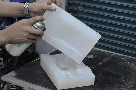 ①用小刀去除母模的加工毛刺及支撑物,注意不要损坏表面及细节部分。②按照图样要求修整样件,保证母模表面尺寸精度。③将脱模剂均匀地喷在母模表面,注意深孔或窄槽要喷到。④确定分模线,并用标记标出。